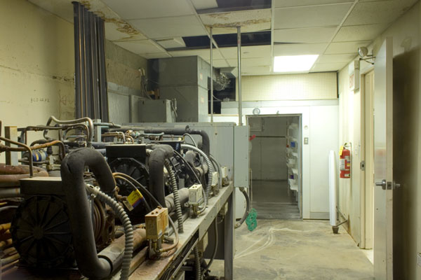 Goodbye, Marina Food & Liquor Apr. 5, 2014 – (Above) All that remains of a convenience store that served Marina City for 12 years. Marina Towering Corporation, doing business as Marina Food & Liquor, signed a lease in September 2001 for this space on the concourse level. What the store lacked in competitive prices, it more than made up for in convenience and personal service from Alex Espinoza, who ran the store almost single handedly for owner Pankaj Patel. At one time, the store was stocked by what is now Central Grocers, a retail co-op owned by the Illinois supermarkets that it supplies. The store struggled financially for months and then called it quits in March. Its last day was March 24, 2014. Since then, the space has been shown to prospective tenants and not all of them are grocery stores. There have been inquiries, including one from a MillerCoors distributor. Hotel Chicago briefly considered doing something with the space. But as of April 2, when these images were captured, the space was still available. Kim McGuire, Senior Vice President, CBRE, is showing the property and he can be reached at 312-935-1974 or by email at kim.mcguire@cbre.com. (Above) The view from behind the counter. (Click on images to view larger versions.) Inside one of three coolers. View from near one of the other coolers. A room at the back of the store. Directly ahead, past the cooling equipment, is the cooler in the northeast corner. In all fairness, this food service area had not been utilized for many years. What the front of the store looked like on December 17, 2009. |