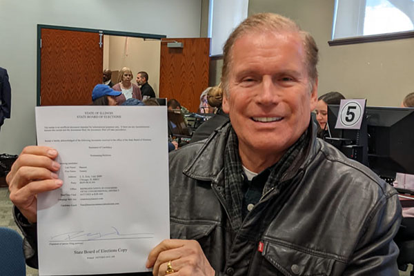 (Above) Tommy Hanson holds up a receipt showing his nomination papers officially received by the Illinois State Board of Elections on October 27.